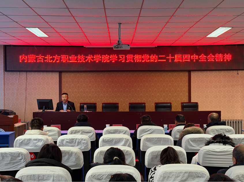 为深入学习贯彻党的二十届四中全会精神,切实把全院干部职工的思想和行动统一到党中央决策部署上来,12月28日,我院在寒假放假前职工学习培训期间组织开展党的二十届四中全会精神集中学习会。学院党委副书记王景沛作专题辅导报告,学院党...