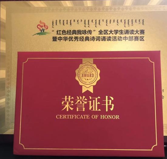 此次活动在内蒙古大学进行中部赛区复赛,我院团委书记孙蕾老师、学生处副处长任铁映老师带领70名学团干部来到了本次中部赛区的现场,我院天籁之音广播站14名代表参加比赛。经过激烈的角逐,我院在“红色经典我咏传”全区大学生诵读大赛暨中华优秀经典诗词诵读活动中部赛区复赛中荣获“优秀组织奖”,作品《追忆红色经典•传承家国情怀》荣获优秀作品奖。