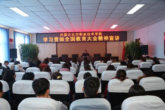 为深入学习贯彻全国教育大会精神,按照教育部党组和自治区高校工委、教育厅关于认真学习贯彻全国教育大会精神的通知要求及统一部署,结合我院工作实际,11月22日下午,举办学习贯彻全国教育大会精神宣讲。宣讲会由学院党委委员、党委副书记、纪委书记杨茂忠宣讲,学院党委委员、董事、督导办主任许志勇,副院长温国柱,副院长刘义,副院长何岳勇出席宣讲会。学院各处室副处级以上干部、各党支部书记、全体教职工、部分学生代表参加本次宣讲会。